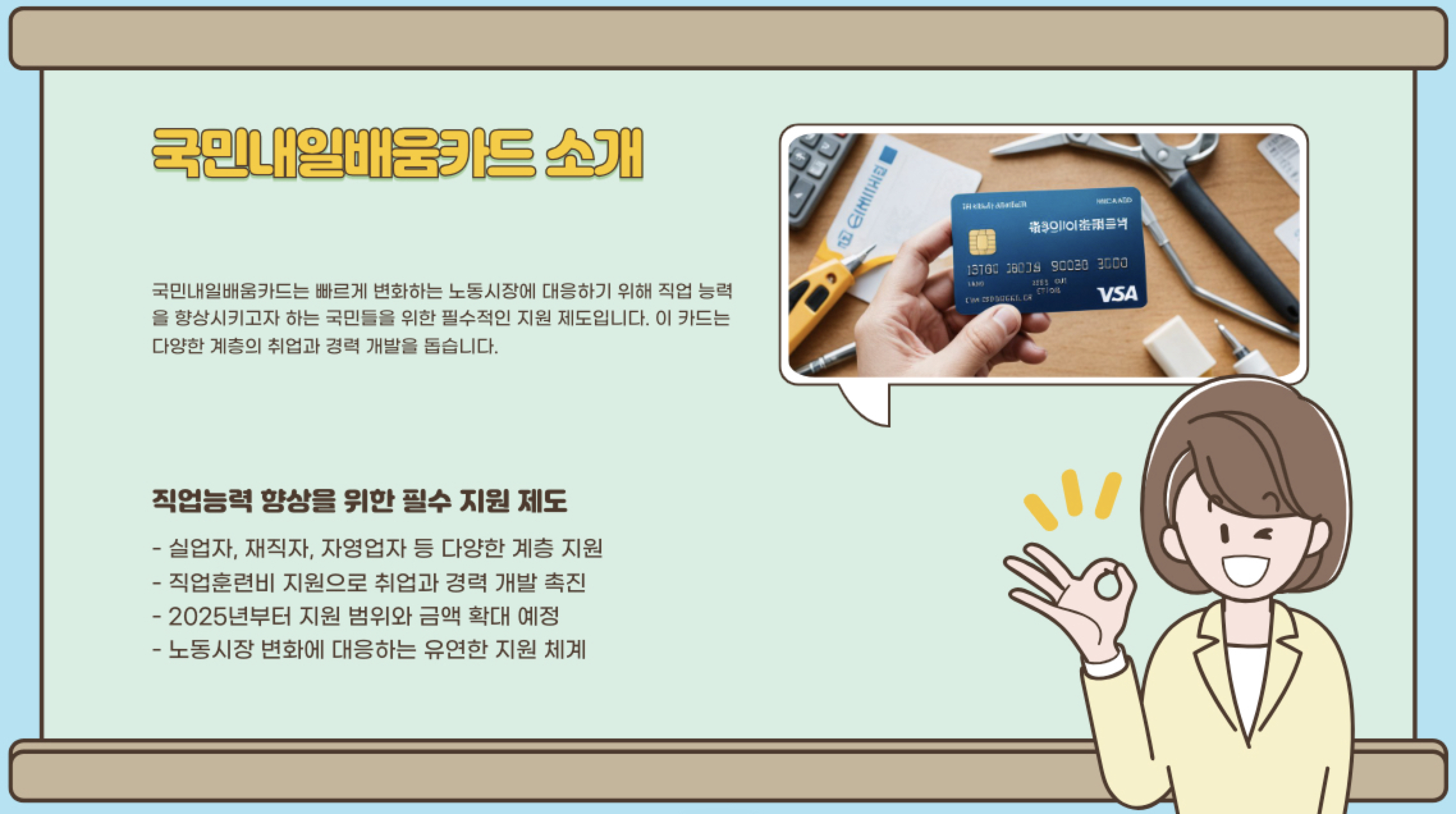 빠르게 변화하는 노동시장에 대응하기 위해, 직업 능력을 향상시키고자 하는 분들에게 국민내일배움카드는 필수적인 지원 제도입니다. 이 카드는 실업자, 재직자, 자영업자 등 다양한 계층에게 직업훈련비를 지원하여 취업과 경력 개발을 돕습니다. 특히, 2025년부터는 지원 범위와 금액이 확대되어 더 많은 국민이 혜택을 받을 수 있습니다.